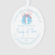 Celebrate the joy of your first Christmas as a family of three with our beautifully personalized ornament. Featuring adorable baby footprints adorned with a red ribbon, this ornament is perfect for commemorating this special milestone. Customize the text with your family's names and the year to make it a cherished keepsake. Ideal for hanging on your Christmas tree or as a thoughtful gift for new parents. Crafted with care, this ornament captures the warmth and love of your growing family.