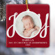 This keepsake First Christmas As Grandparents photo ornament is decorated with the word JOY in stylish script typography on a red background. Easily customizable.