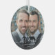 Commemorate the first Christmas of your marriage with this beautiful modern keepsake ornament. The white text reads "Our first Christmas as Mr & Mr," with the words "Mr & Mr" in elegant handwriting script with flourishes before and after. Replace the sample image with your favorite photo, and add your last name and the year. A dark gradient filter helps make the text pop.