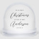Holiday snow globe home decor and gift for the newlyweds featuring modern calligraphy "Our 1st Christmas as" with personalized name, year, and photo.