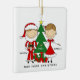 Our stick figure family of 2 christmas ornament features a cute stick figure couple with a christmas tree and presents! Personalize with your information and date and you're all set to go! Wonderful dated keepsake gift for your first christmas and a great addition to you christmas ornament collection.