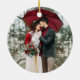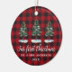 First Christmas Calligraphy Pines Plaid PHOTO BACK Ceramic Ornament