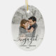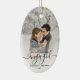 First Christmas Engaged Custom Photo Black Script Ceramic Ornament