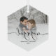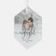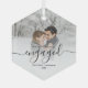 First Christmas Engaged Custom Photo Black Script Glass Ornament