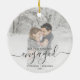 First Christmas Engaged Custom Photo Gray Script Ceramic Ornament