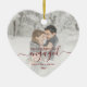 First Christmas Engaged Custom Photo Red Script Ceramic Ornament
