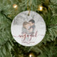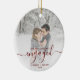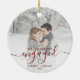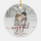 First Christmas Engaged Custom Photo Red Script Ceramic Ornament