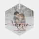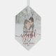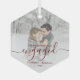 First Christmas Engaged Custom Photo Red Script Glass Ornament