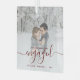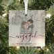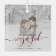 First Christmas Engaged Custom Photo Red Script Glass Ornament