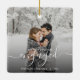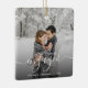 First Christmas Engaged Custom Photo White Script Ceramic Ornament