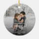 First Christmas Engaged Custom Photo White Script Ceramic Ornament