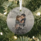 First Christmas Engaged Custom Photo White Script Glass Ornament