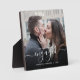 Commemorate your engagement with this beautiful modern keepsake plaque. The white text reads "Our first Christmas engaged," with the word "engaged" in elegant handwriting script with flourishes before and after. Replace the sample image with your favourite photo, and add your names and the year. A black gradient filter helps make the text pop.