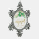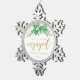 First Christmas Engaged Gold Glitter Script Holly Snowflake Pewter Christmas Ornament
