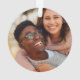 For your first Christmas engaged this elegant holiday ornament features a simple faux gold glitter typography design that reads "Our First Christmas engaged" with your first names and year to personalize on white. The back of the ornament features a photo for you to change to your own. Best of luck on your future wedding! Designed by artist ©Susan Coffey.