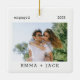 First Christmas Engaged Modern Minimalist Photo Ceramic Ornament