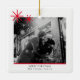 Chic and minimalistic photo holiday Christmas tree ornament, featuring timeless typography reading 'Our first Christmas engaged' in black against a clean, simple white backdrop. Personalize this keepsake with your own photo, personalized greeting, and names for a special touch. This sleek, contemporary design is the perfect way to announce your engagement to your loved ones this holiday season! The image shown is for reference and can be replaced with your own photo, and the placeholder image captures a tender moment of a young couple.