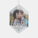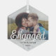 First Christmas Engaged Photo Faux Marble Hexagon Glass Ornament