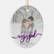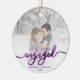 First Christmas Engaged Photo Purple Foil Script Ceramic Ornament