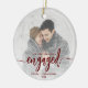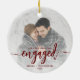 First Christmas Engaged Photo Red Script Ceramic Ornament