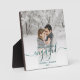 First Christmas Engaged Photo Teal Blue Script Plaque