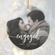 First Christmas Engaged Photo White Script Ceramic Ornament