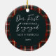 First Christmas Engaged Tartan Plaid Photo Ceramic Ornament