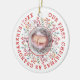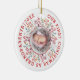 This delightful ceramic ornament is the perfect way to commemorate the family's first Christmas as grandparents! Featuring a festive design with a photo of the baby in a frame made of berries and leaves, it is decorated with the text 'OUR FIRST CHRISTMAS AS GRANDPARENTS. 20XX' in a beautiful red hue. On the back of the ornament, the same floral frame and your text will be included, creating a perfect keepsake to hang on your tree for years to come. This unique and charming ornament will be a meaningful reminder of the joy of your first Christmas as grandparents.