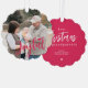 Modern Joyful pink script and heart First Christmas as grandparents keepsake tree ornament card for grandma and grandpa and their first grandchild, grandson or granddaughter.