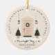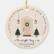 This cute ornament FIRST CHRISTMAS IN NEW APARTMENT features an apartment door in beige and Christmas trees. Click on "Personalize this template" to customize the message and names. If you wish to change the fonts, placements and colors of the texts, go to "Edit using Design Tool".