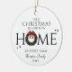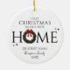 Mark the magic of your first Christmas in a new home with this elegant, round, white ceramic Christmas ornament featuring a wreath with a red bow. Personalize it with your address, family or couple's name, and the year to create a festive keepsake you’ll treasure for years. A thoughtful housewarming gift or memory for your first Holiday season in a new place. Double-sided.
