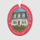Personalize this modern and elegant 'First Christmas in Our New Home' ornament with a photo of your house, your last name or family name, and the year it was purchased. Elegant red background colour can be modified) and white round-shaped text and snowflake accents beautifully frames the photo. Photo tip: crop photo to a square format before uploading to the site.