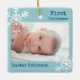First Christmas Light Blue Navy Photo Snowflakes Ceramic Ornament