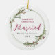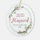 First Christmas Married Minimal Wreath Photo Ceramic Ornament