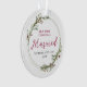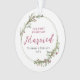 Celebrate your first Christmas married with this elegant, minimal wreath photo ornament. The wreath has delicate red berries with green foliage accents. Easy to customize with your names and year on the front and your photo on the back.
