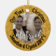 Red glitter (not real) Christmas ornament for newlyweds. Personalize with the couple's names, photo and year.