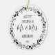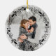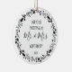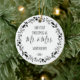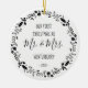 This design features a black and white wreath of Christmas ornaments, holly berries and foliage, surrounding the words "Our First Christmas as Mr. & Mrs." in whimsical black printing and handwriting fonts. Customize the front with your last name and the year, and the reverse side with your favourite square photo. (A light background works best with the black and white wreath frame, or remove the frame if you prefer).