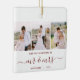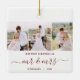 Commemorate your first Christmas as newlyweds with this beautiful modern keepsake ornament. The burgundy red text reads "Our first Christmas as," with the words "mr & mrs" in elegant handwriting script with flourishes before and after. Replace the three sample images with your favourite vertical photos, and add your last name(s) and the year.