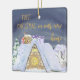 First Christmas in new home holiday ornament - which you can edit for single, couples and families and personalize with the year and your new address. Fun design with cozy house rooftop against the midnight sky with santa footprints in the snow and some gifts ready to come down the chimney.
