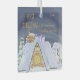 First Christmas in new home holiday ornament - which you can personalize with the year and your new address. Fun design with cozy house rooftop against the midnight sky with santa footprints in the snow and some gifts ready to come down the chimney.
