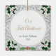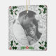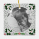 Vintage Christmas photo holder with grey pattern and classic foliage in the corners. Place your custom photo on the front and customise the back with your name and date in elegant font