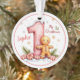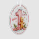 Celebrate a sweet holiday milestone with this charming “My 1st Christmas” ornament featuring a large pink number one dusted with snow and adorned with delicate snowflakes. Nestled below is a cheerful gingerbread figure with icing details and red buttons, surrounded by red and white peppermint candies and sprigs of green pine. The festive text “My 1st Christmas” appears in playful red and green script, adding a joyful touch to the wintry scene. A customizable name appears in elegant pink script, making this ornament a heartfelt keepsake for your little one’s first holiday season.