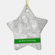 Personalized keepsake star-shaped ornament with a green bar across the front to label. There is more room on the back to personalize.