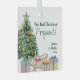 Our First Christmas Pregnant! Personalized holiday ornament keepsake for your first christmas expecting your 1st baby. The design features a lit christmas tree with crib and gift wrapped presents. Personalize with your names and the year and, edit the word "pregnant!" if you wish. Perfect as a pregnancy announcement or as a little sentimental gift for yourselves.