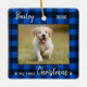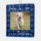 COPYRIGHT © 2020 Judy Burrows, Black Dog Art - All Rights Reserved. First Christmas Puppy Blue Plaid Dog Pet Photo Ceramic Ornament