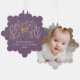 First Christmas purple reindeers elegant 1 photo Ornament Card