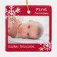 First Christmas Red Custom Photo with Snowflakes Ceramic Ornament