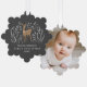First Christmas reindeer elegant black 1 photo Ornament Card