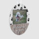 First Christmas Rustic Puppy 2 Photo Paw Pattern Ornament. Cute and fun puppy's first Christmas ornament. The black paw pattern is on white. Add one photo on the front and one on the backside, and personalize it with your name, year and your custom text.