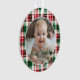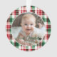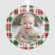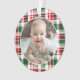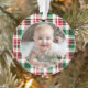 Cute Baby's First Christmas holiday photo ornament features a rustic pattern in classic, traditional Christmas colours of red, green. Edit in a minute, upload your favourite photo and enter your data. Perfect for your new little one!